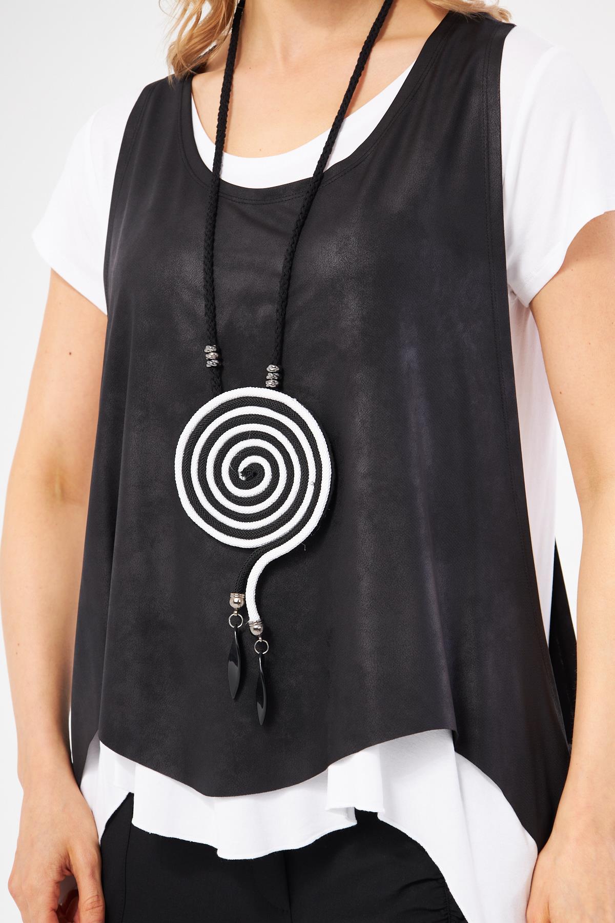 DERİ DETAYLI SİYAH BLUZ